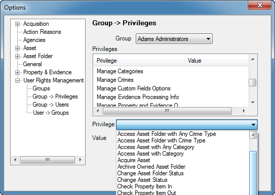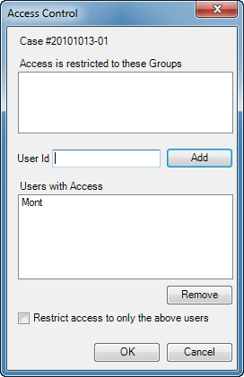 Control access. Grant/restrict access to cases by crime type, to assets by user-defined categories, etc.