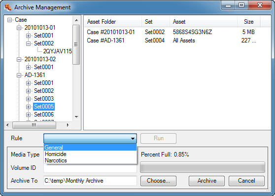 Archive manually. Archive individual asset folders or assets as well as execute rules manually, as needed.