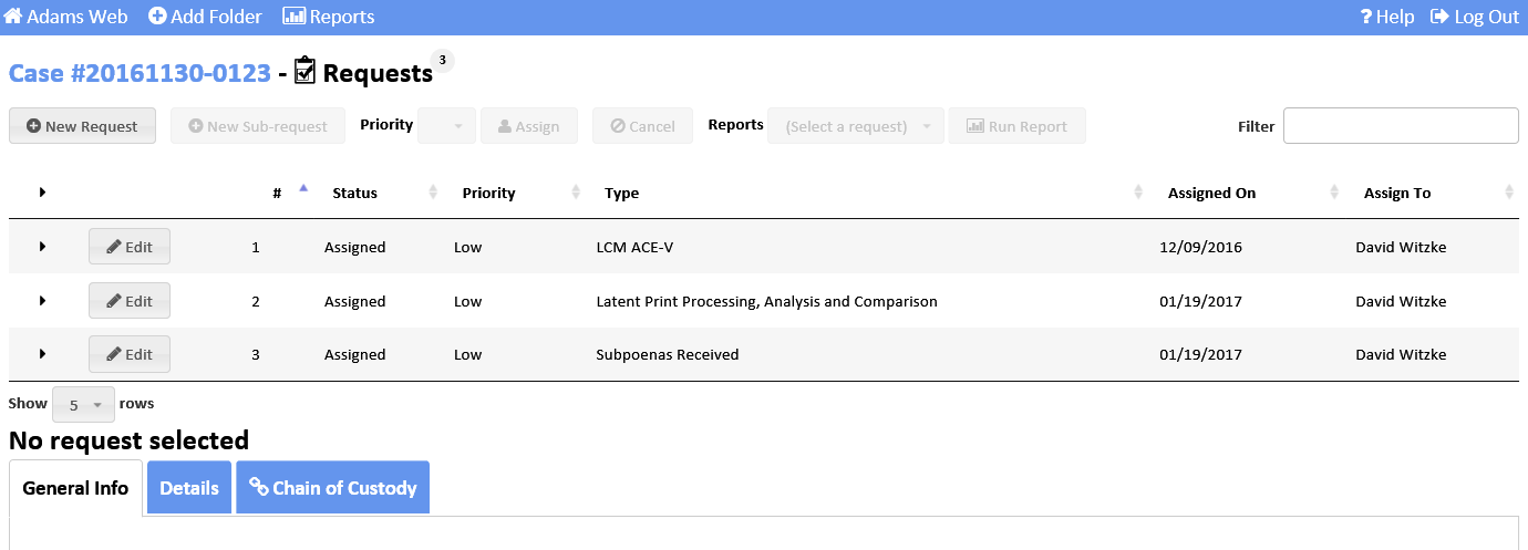 View workload. Display a list of requests for a case.