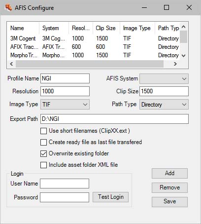 Configure multiple profiles. Configure AFIS Connect for all major AFIS vendors using system prompts for the configuration parameters specific to each vendor. Set up AFIS Connect for as many AFIS connections as necessary (local, state, federal, etc.).